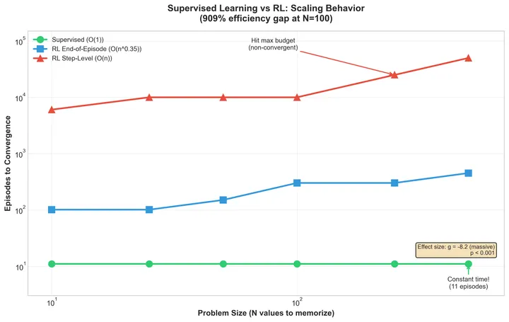 Empirically Validating the Information-Theoretic Gap Between SL and RL